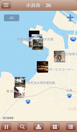 地図と航空写真を切り替えます